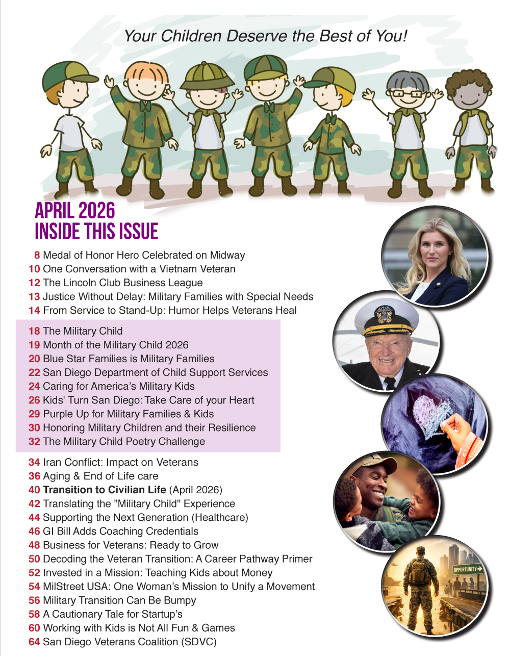 April 11, 2026 Articles 0 60 Inside the Issue – April 2026 Inside the Issue, featuring editorial contents, features & columns of April 2026 (San Diego Veterans Magazine) See Direct link to April 2026 Issue Recommend to friends
